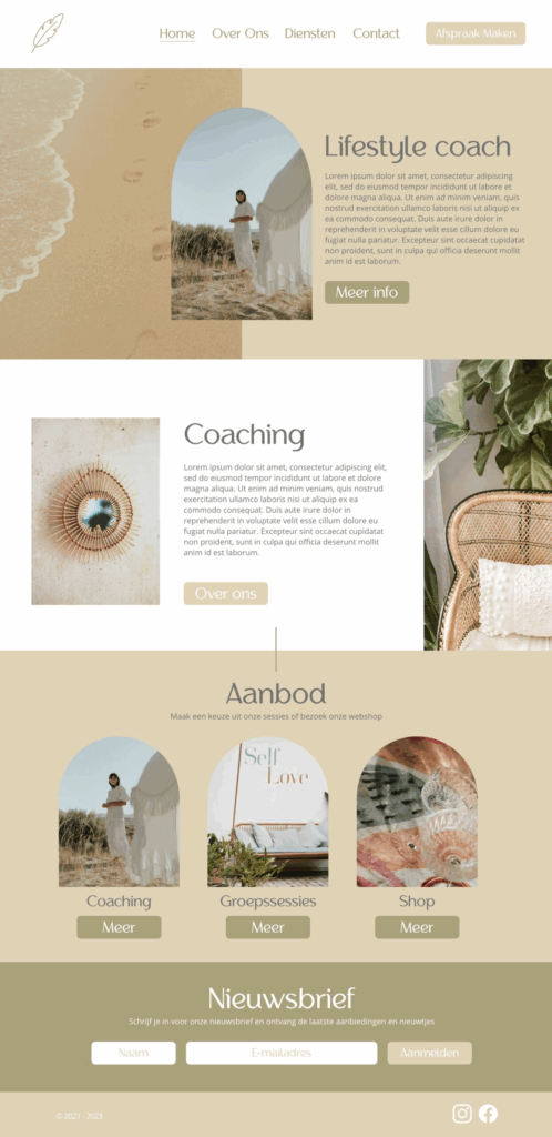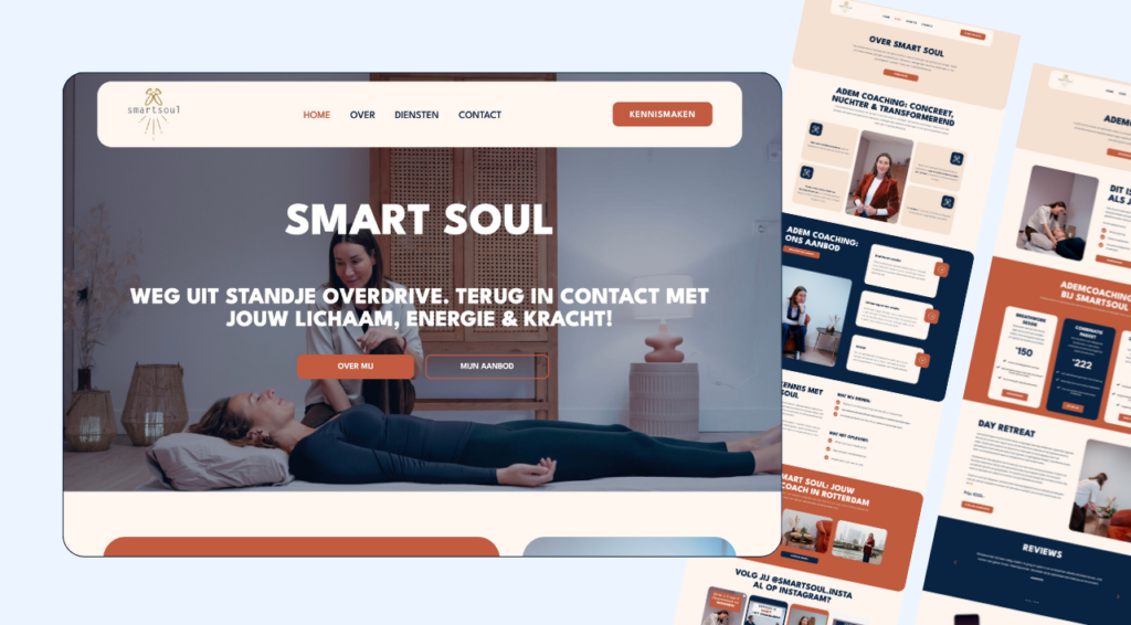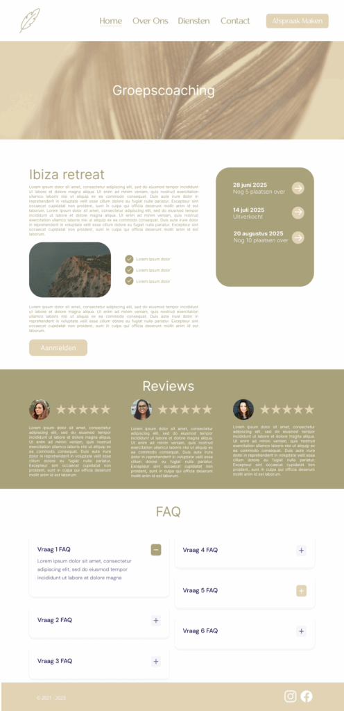 • Structuur: Een overzichtelijke en conversiegericht structuur, met slim geplaatste call-to-actions die uitnodigen tot actie: van het plannen van een afspraak via de agenda-integratie, tot het inschrijven voor de populaire masterclass of het ontdekken van gezonde recepten.