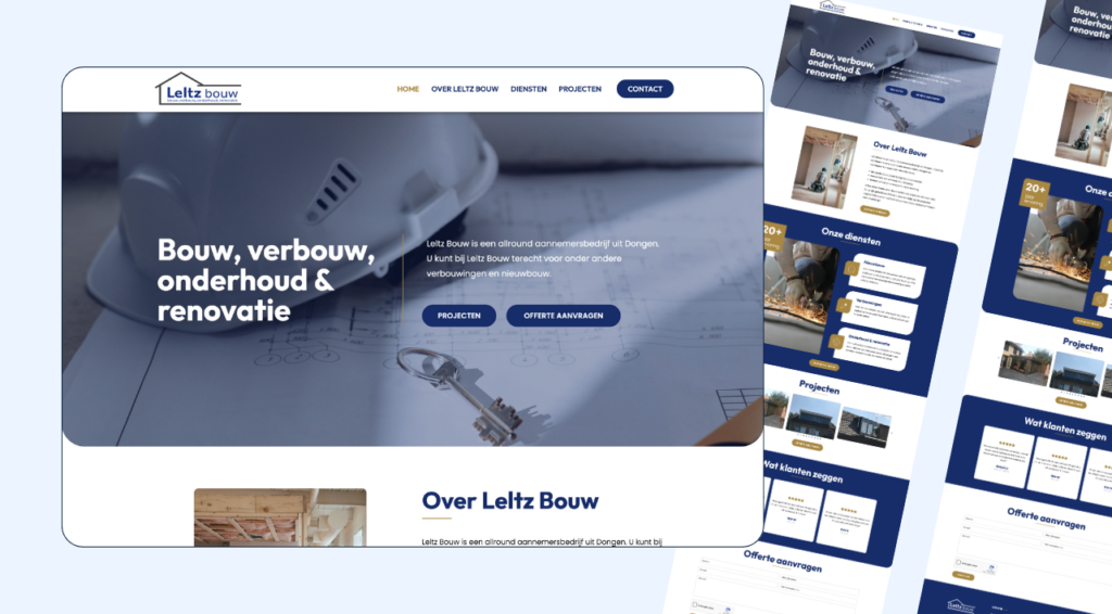 Voor Leltz Bouw ontwikkelden we een moderne en overzichtelijke website die hun vakmanschap en betrouwbaarheid in de bouwsector weerspiegelt. De site biedt bezoekers een duidelijke indruk van de diensten en gerealiseerde projecten, en maakt het gemakkelijk om in contact te komen.