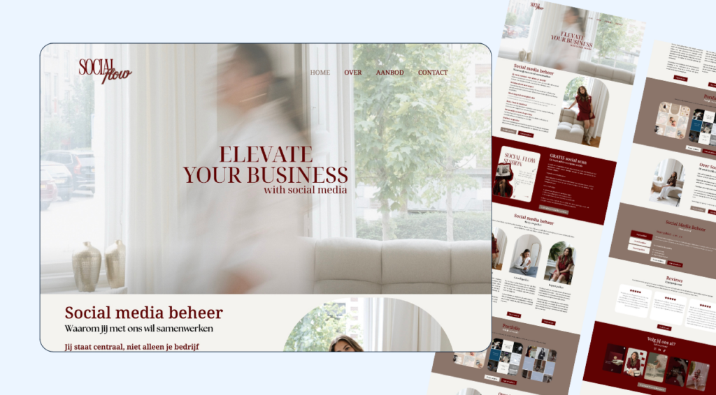 Deze portfolio pagina laat precies zien wat er mogelijk is als jouw bedrijf staat voor vrouwelijkheid en zachtheid. Deze coaching website bestaat uit de 5 essentiële pagina’s, namelijk: Home – Over ons – Diensten (overzicht) – Diensten (detail) – Contact.